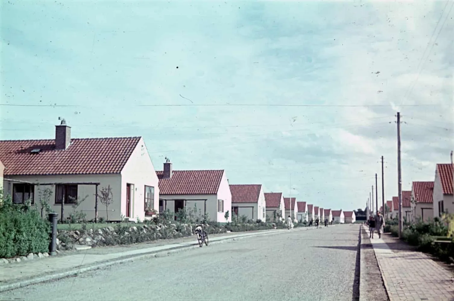 Og byggemetoden var amerikansk, som flere aviser skrev. For første gang i Odense blev et helt parcelhusområde opført som modulbyggeri også kaldet samlebåndsbyggeri. "Hunderuphøj" skulle det have heddet. Men bankdirektør Georg Jacobsen fejede navneforslaget af bordet. Det skulle være et folkeligt navn. Og det blev det - Folkebo.